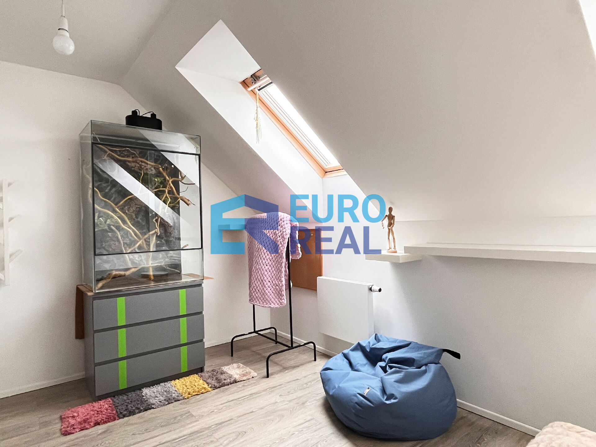 Jedná se o 100% osobní vlastnictví domu ve velmi klidné ulici v rámci vilové zástavby. Dispozice domu je 5+1. V přízemí se nachází obývací místnost s velkorysým prosklením a s přímým vstupem na terasu, dále kuchyň s jídelním koutem. Na terasu / zahradu je navíc vstup z chodby. V přízemí je dále menší pracovna s oknem do zahrady a toaleta plus technická místnost. Půdu lze využít jako skladovací prostory.