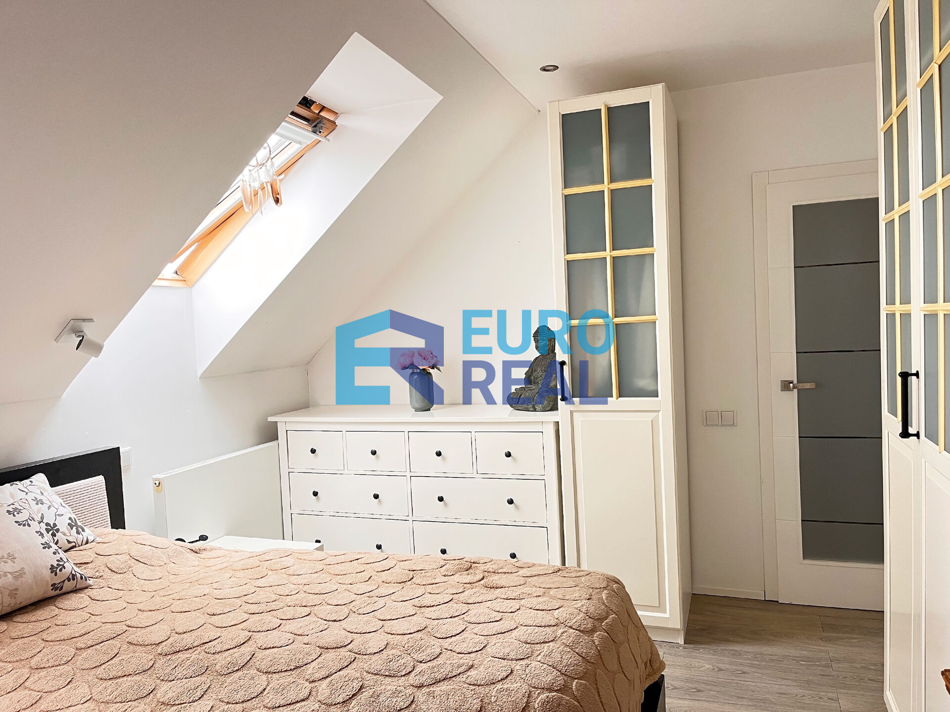 V prvním podlaží pak jsou 3 ložnice se společnou šatnou. V patře je také velká koupelna s vanou i sprchou a WC.